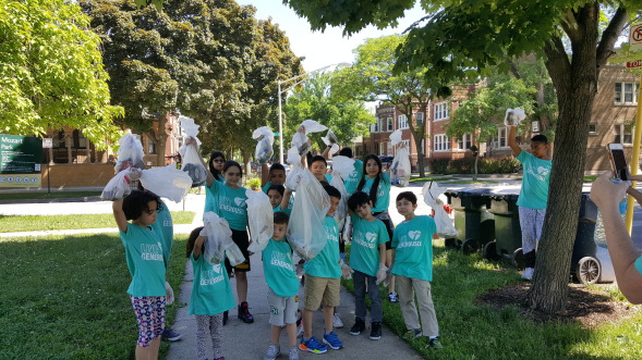 by cleaning trash in the neighborhood.